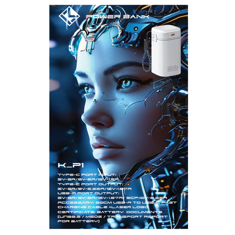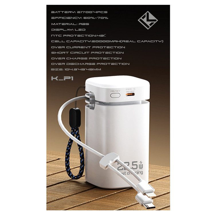 پاوربانک کلومن مدل K-P1 با ظرفیت واقعی 20,000 میلی آمپر ساعت مجهز به چراغ قوه قوی و سایز کوچک و جمع و جور، گزینهای حرفهای برای شارژ سریع و ایمن انواع گوشی، تبلت و دستگاههای USB است. بدنه مقاوم ABS و نمایشگر LED امکان نظارت آسان بر وضعیت شارژ و باتری را فراهم میکند.مشخصات فنی : ظرفیت سلول: 20,000 میلی آمپر ساعت و باتری: 21700 * 4PCS پورت Type-C (ورودی): 5V-3A / 9V-2A / 12V-1.5A پورت Type-C (خروجی): 5V-3A / 9V-2.22A / 12V-1.67A پورت USB-A (خروجی): 5V-3A / 9V-2A / 12V-1.67A SCP: 10V-2.25A راندمان: 60%-70% جنس بدنه: ABS نمایشگر: LED -حفاظتها: NTC Protection - حفاظت در برابر جریان بیش از حد - حفاظت در برابر اتصال کوتاه - حفاظت در برابر شارژ بیش از حد - حفاظت در برابر تخلیه بیش از حد - ابعاد: 104.8 × 49 × 49 میلیمتر -رنگها: مشکی، سفید - لوازم جانبی: کابل ۳۰ سانتیمتر USB-A به USB-C با شارژ سریع + لوگوی لیزری - گواهیها: مدارک باتری UN38.3 / MSDS / Transport Report