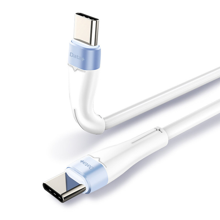 کابل دو سر تایپ c ضخامت :3.8mm جنس:TPE کانکتور جوش داده شده با لیزر شارژ سریع و انتقال دیتا مقاوم در برابر گره خوردن و در هم پیچیدن طول عمر بیش از 3000 بار خم شدن