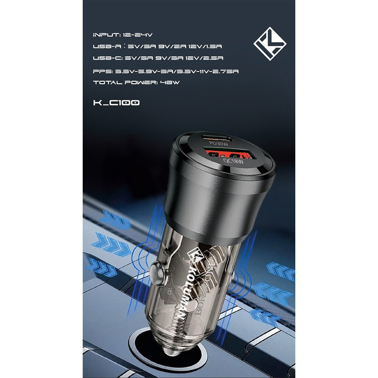 شارژر فندکی Koluman با یک پورت USB و یک پورت تایپ C، امکان شارژ سریع و همزمان دو دستگاه را در خودرو فراهم میکند. طراحی فشرده و ایمن این شارژر، مناسب برای گوشیها، تبلتها و دستگاههای الکترونیکی مختلف است. تجربهای راحت و سریع از شارژ در مسیرهای طولانی یا استفاده روزانه.