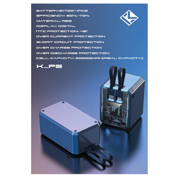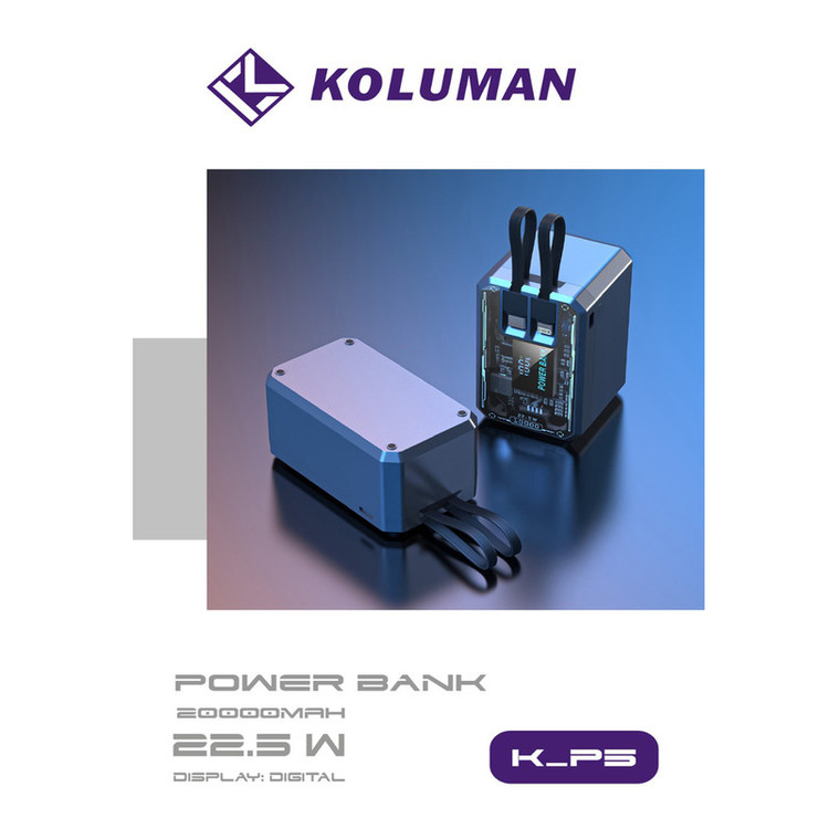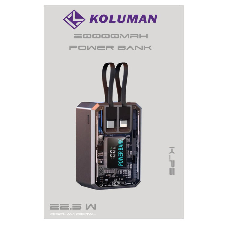پاوربانک Koluman K-P5 با ظرفیت ۲۰۰۰۰ میلیآمپرساعت، یک انتخاب ایدهآل برای افرادی است که به دنبال شارژ سریع، ماندگاری بالا و قابلیت حمل راحت هستند. این پاوربانک با طراحی فشرده و قدرت بالا، به شما این امکان را میدهد که دستگاههای مختلف خود را در هر زمان و مکانی به راحتی شارژ کنید.