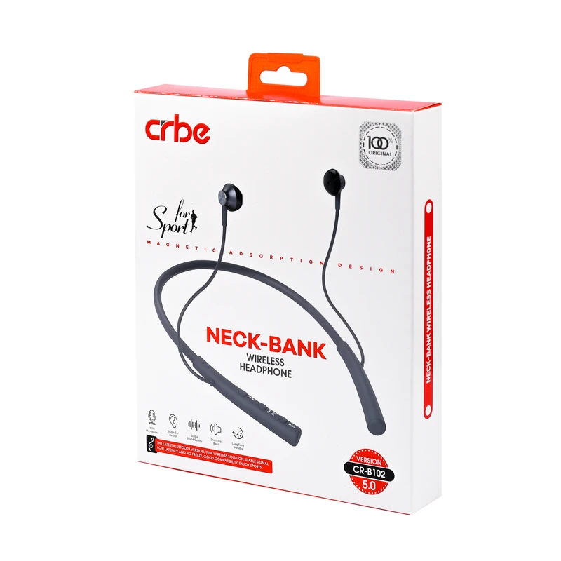 هندزفری بیسیم Crbe مدل CR-B102 با طراحی گردنی و بلوتوث 5.0، صدای استریو با باس قوی و میکروفن داخلی، تجربهای راحت و پایدار از موسیقی و تماسها ارائه میدهد. مناسب برای استفاده روزمره و ورزشی با اتصال پایدار و تأخیر کم.