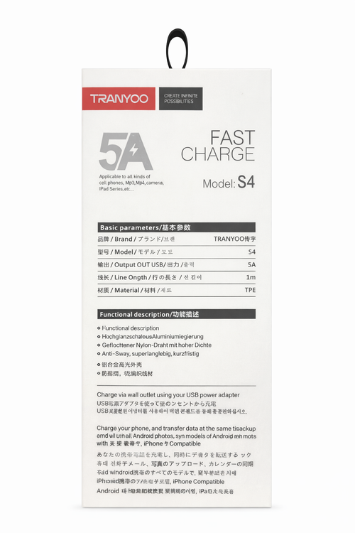 کابل شارژ و انتقال داده Tranyoo مدل S4 یک کابل قدرتمند و بادوام برای دستگاههای دارای درگاه Micro USB است که با پشتیبانی از شدت جریان تا 5 آمپر، امکان شارژ سریع و پایدار را فراهم میکند.