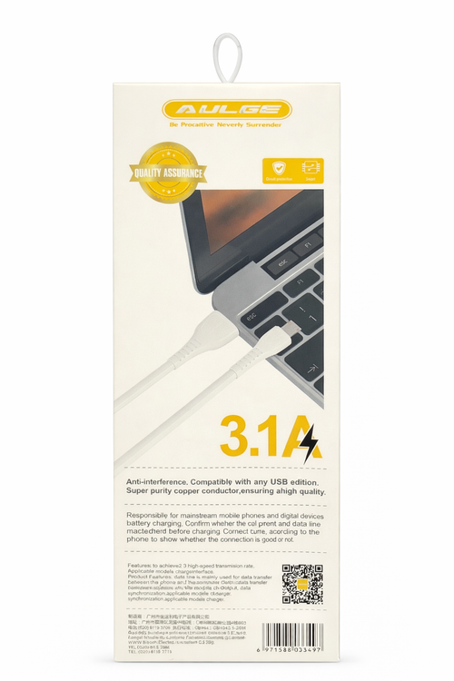 کابل شارژ و انتقال داده AULGE مدل AD1-01 مناسب دستگاههای دارای درگاه Micro USB است و با پشتیبانی از شدت جریان 3.1 آمپر، امکان شارژ سریع و پایدار را فراهم میکند.